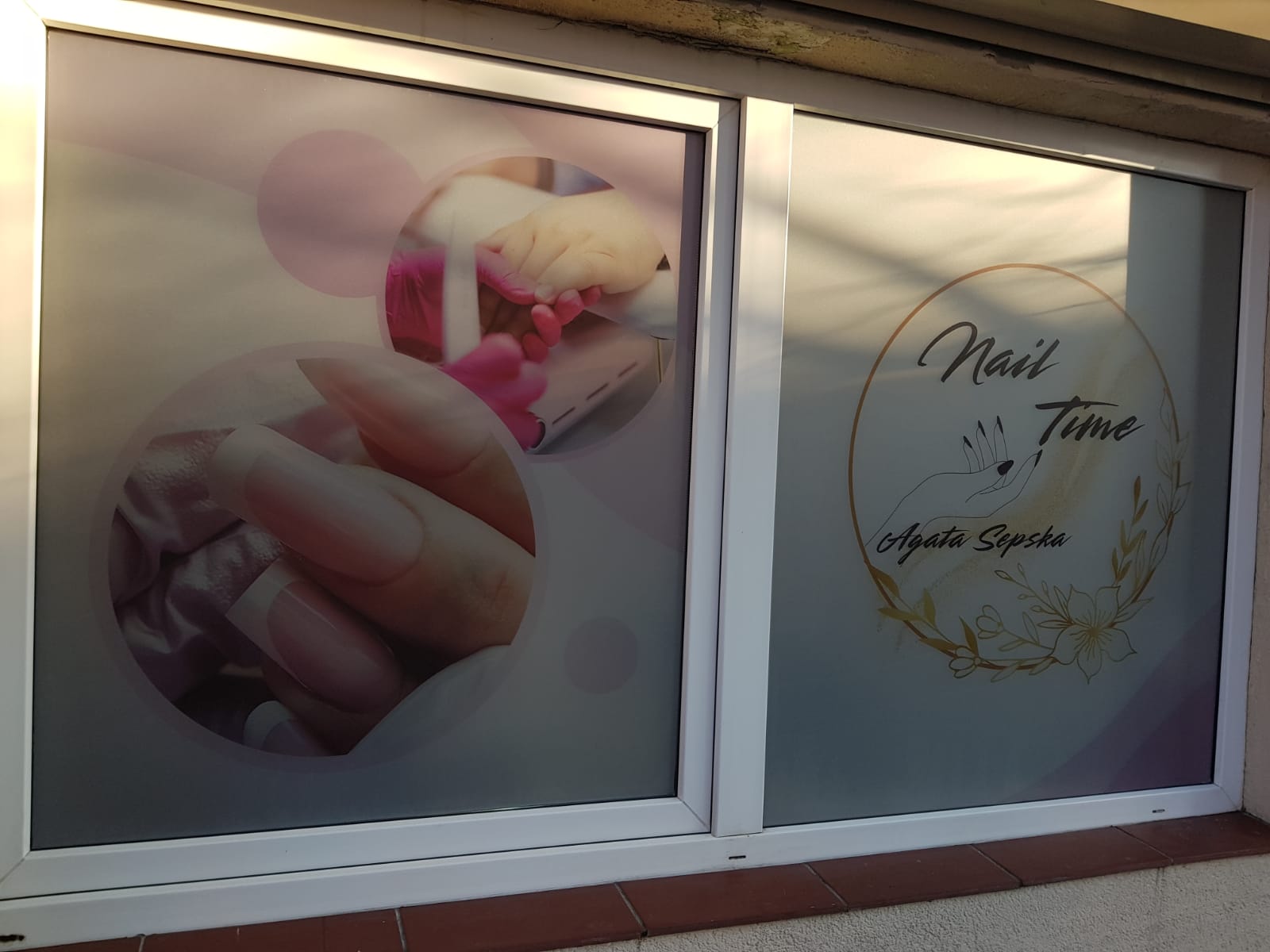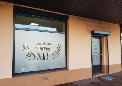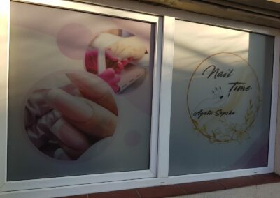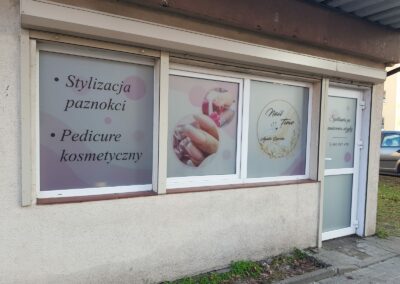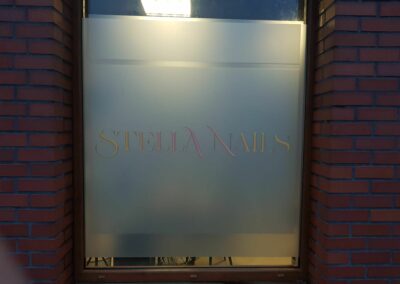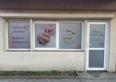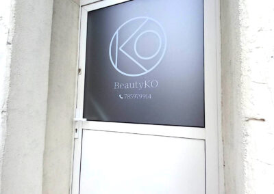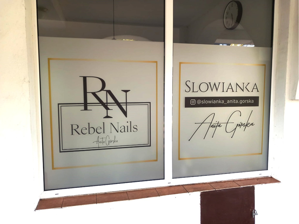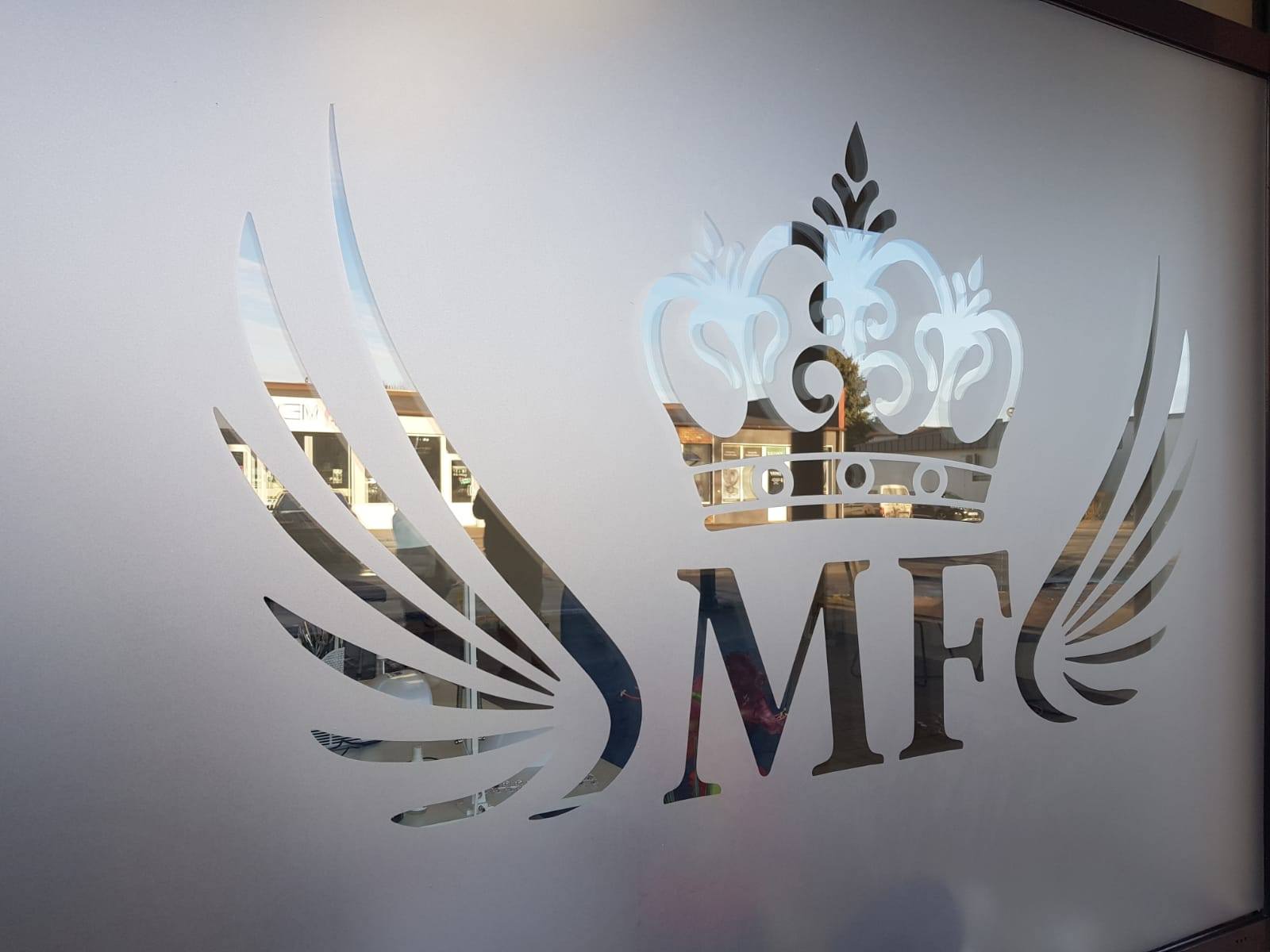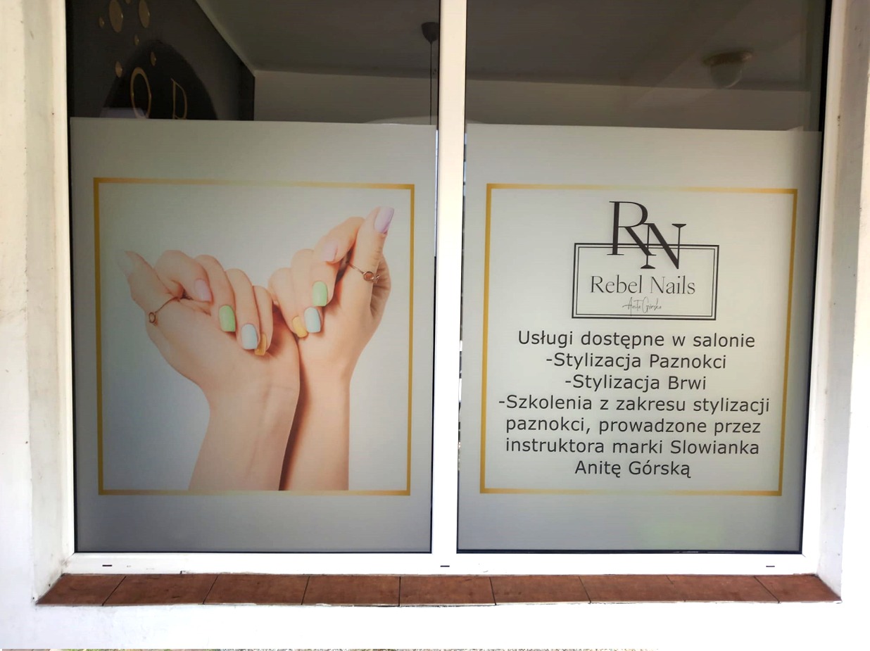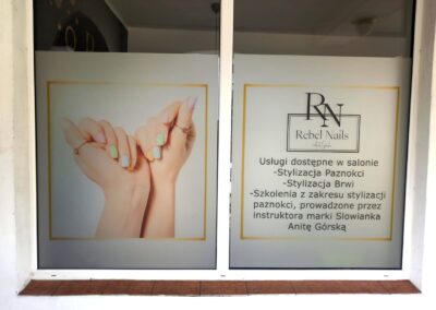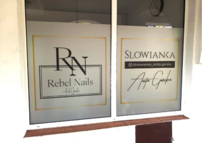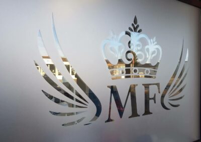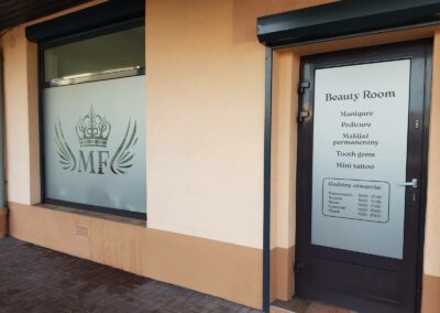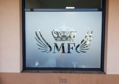 Folie szronione z wycinaną grafiką i logotypem