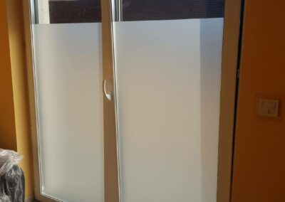 W domach prywatnych folie szronione najczęściej stosuje się na: