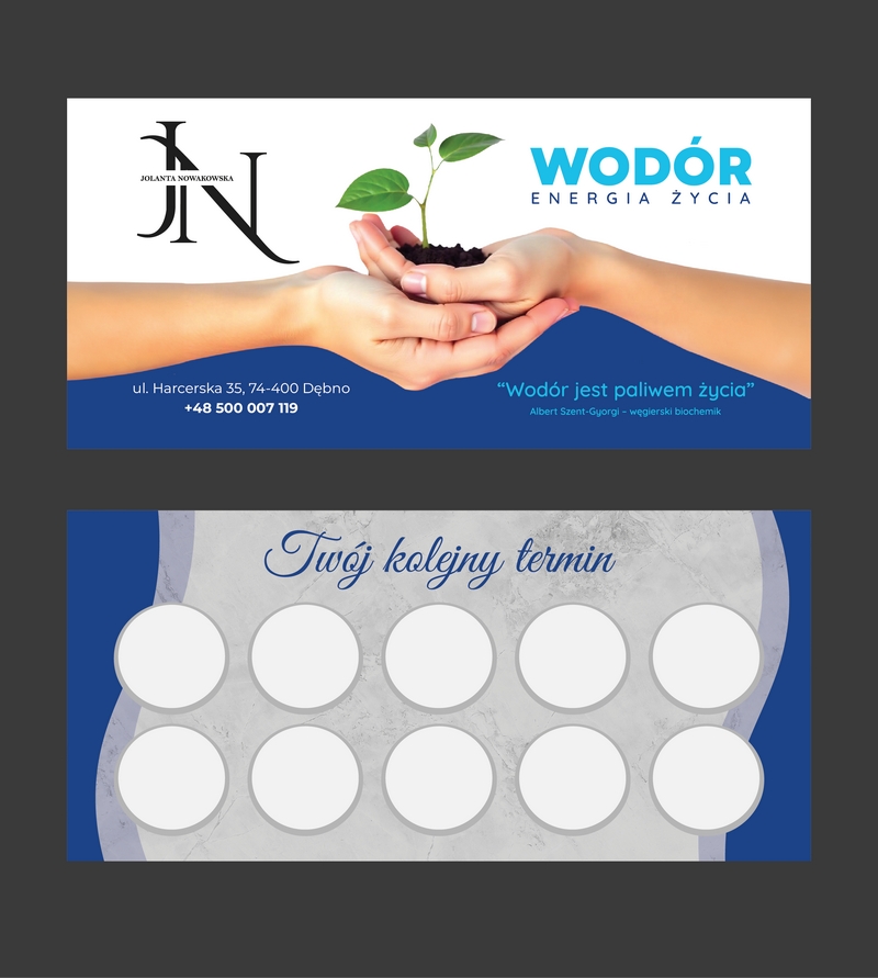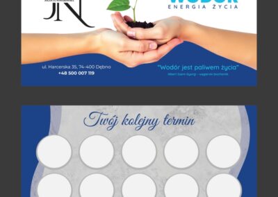 - Wizytówki i vouchery – materiały kontaktowe i sprzedażowe.
