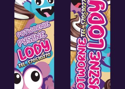 - Projekty do druku wielkoformatowego – banery, rollupy, windery i reklamy zewnętrzne.